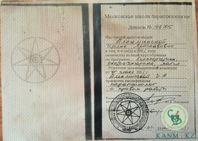 Ирина Алекминская Телефон: 8 701 342 83 58 Достижения: практикующий психолог, народный целитель, мастер женского магического обаяния. член Казахстанской Ассоциации Народной Медицины Города: Астана